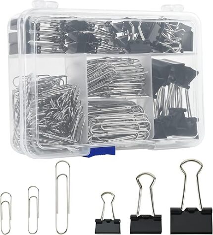 Binder Clips Paper Clips Assorted Sizes, 340pcs Black Binder Clips Jumbo Paperclips Set, Large Paper Clips for Office, School Supplies, Binder & Paper Clips in Container with Compartments