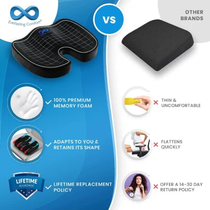 Everlasting Comfort Seat Cushion Pillow for Office Chair – Sit Longer, Feel Better – Butt, Tailbone, Back, Coccyx, Sciatica Memory Foam Cushions – Computer Desk Pain Relief Pad