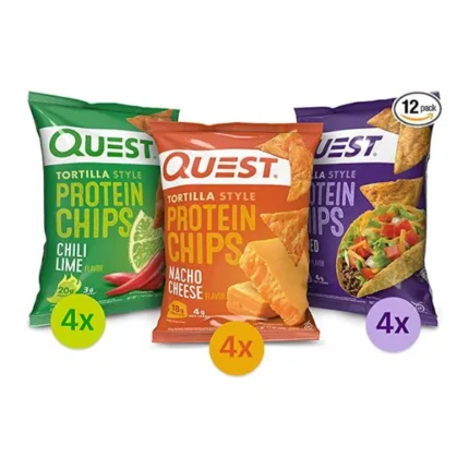 Quest Tortilla Style Protein Chips Variety Pack, Chili Lime, Nacho Cheese, Loaded Taco, 12 Count