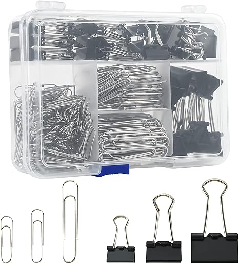 • Bulk Pack- 340pcs bulk binder clips and paper clips in plastic box storage,and will get great customer serivce,if you have any comments