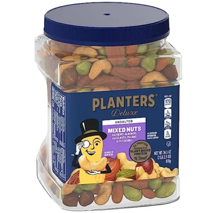 PLANTERS Unsalted Premium Nuts 34.5 oz Resealable Container- Contains Roasted California Pistachios, Cashews, Almonds, Hazelnuts & Pecans – No Artificial Flavors or Colors