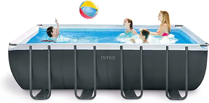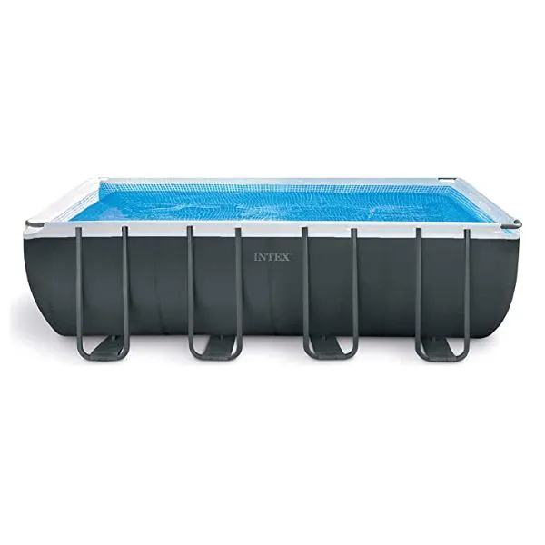 Make a splash this summer with the Intex Ultra XTR Rectangular Frame Pool Set. The rectangular swimming pool design is perfect for narrow backyards, lap swimmers, and pool games. The Ultra Frame design provides excellent durability and a sleek gray finish, all while making setup quick and easy. This pool includes everything you need for a great pool experience, including the powerful Krystal Clear 110-120V 1,200 gallon per hour sand filter pump, ladder, debris cover, and ground cloth. The sand filter pump saves you time, money, and frustration. The sand filter function replaces the need to buy expensive filters by only needing routine backwashing and replacement sand every 5 years. Swim your summer days away and have a blast in the water with this Intex Ultra Frame Rectangular Pool Set. Note: Requires flat, level ground for proper installation. Disclaimer: Please review your HOA rules and restrictions before purchasing this product. Not all housing agencies permit private above-ground pools.