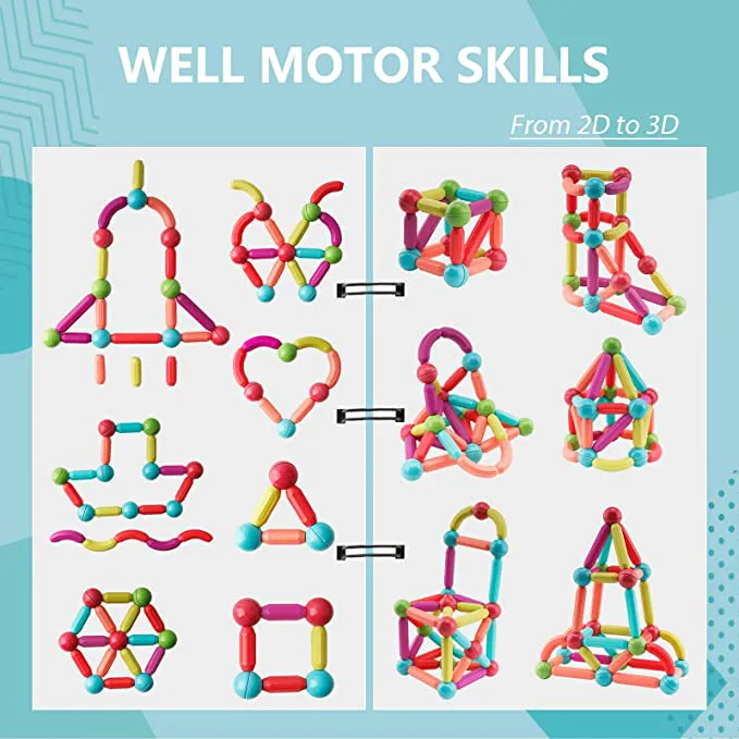 Magnet Building Toys: Built from 2D to 3D models. The magnetic building blocks will encourage kids for creativity. Excellent for developing hand eye coordination, motor skills and imagination which is a toy that practice kid thinking still creativity and exploration ability.