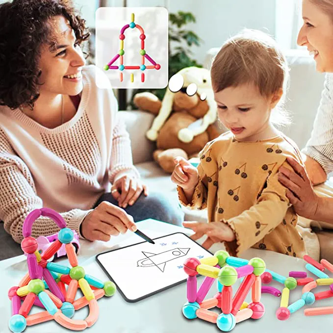 Upgraded Combo Set: We accidentally found that the children moved the magnetic rods to the magnetic panel to play, and found more fun in it. So we added magnetic whiteboard, 5 colored markers and magnetic numbers to achieve the purpose of game and education integration. This magnetic sticks set also can be mixed with other magnets of this type.