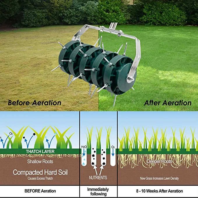 Easy-rolling lawn aerator lets air, water and nutrients reach grass roots