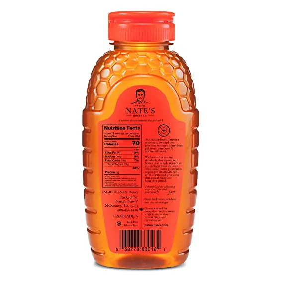 Enjoy Nature Nate?s 100% Pure, Raw & Unfiltered Honey on anything needing a little natural sweetness ? morning coffee or tea, oatmeal, granola, or as a better-for-you sweetener in baked goods. With a purity guarantee and award-winning taste, Nature Nate’s raw & unfiltered honey delivers a promise of the highest quality honey. Through rigorous testing and careful handling, we ensure every bottle of Nature Nate’s honey is the highest quality from the inside out: no additives, no preservatives, never pasteurized, pollens intact, crafted for exceptional taste, and no sticky bottles. Our ultimate goal is to leave the world a little better than we found it by fostering happy hives and happy lives, giving of our time and resources from bees to beyond the bottle in communities of need.