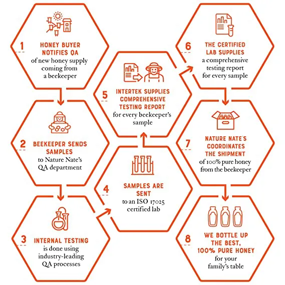 Every bottle of Nature Nate’s raw honey has a purity guarantee to uphold strict testing standards that provide an unmatched level of care and precision that would make any honeybee proud