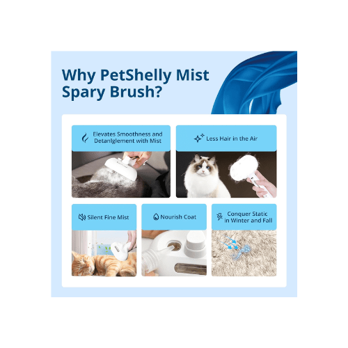 - ELEVATES SMOTHNESS & DETANGLEMENT WITH MIST: PetShelly cat hair brush is designed with a unique spray function that can effectively avoid the generation of static electricity, the phenomenon of flying hair, and can simply and quickly clean the dust on the surface of the pet’s hair.