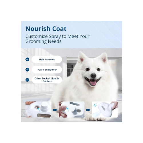 - NOURISHES COAT: You can not only add water, but also add deodorant or hair softener for grooming to the water tank to keep your pet clean and beautiful after every combing.