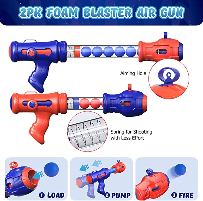Kid-Safe Materials: The bullets are made of soft EVA foam balls. It’s safe and recyclable material.The shooting impact is small because it’s done by the air pressure. Our toy guns are safe for 2 children to play with friends or family members.