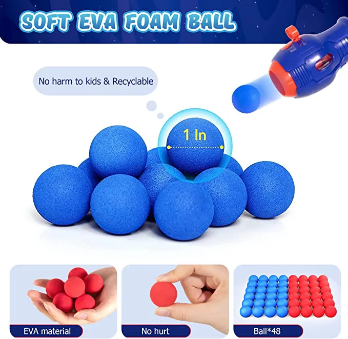 Stlloys Shooting Game Toy for Boys Age 5 6 7 8 9 10+ Years Old, Moving Shooting Target, 48 Foam Balls and 2pk Foam Blaster Air Guns, Birthday for Boys Kids Girls