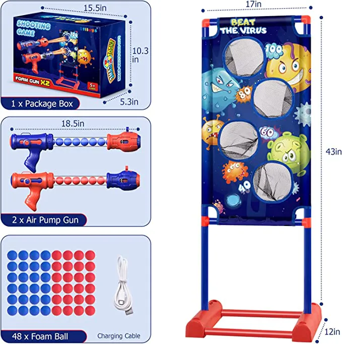 Unique Theme Pattern: Our target cloth is special designed with virus icons which is more fun than old navy blue pattern.Kids will feel more thrilling when shooting at the target and competing for who can get the most shots.Our shooting game toy is a big hit to the family party.