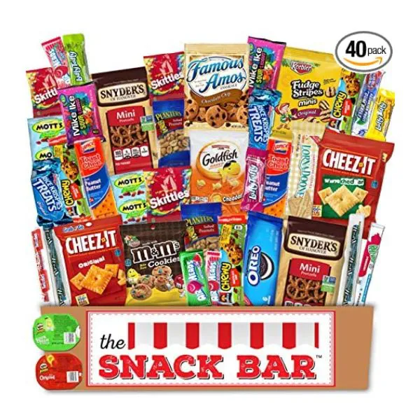 Home Grocery The Snack Bar – Snack Care Package (40 count) – Variety Assortment with American Candy, Fruit Snacks, Gift Snack Box for Lunches, Office, College Students, Road Trips, Holiday Gifts