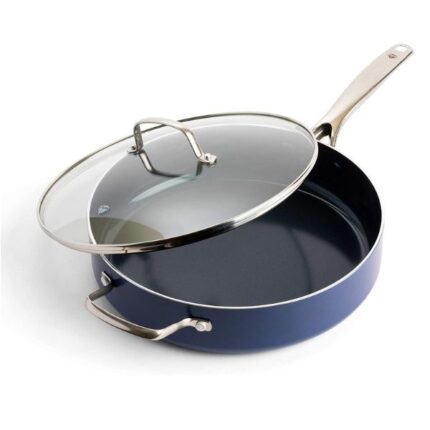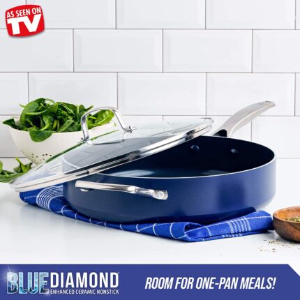 Blue Diamond Cookware Diamond Infused Ceramic Nonstick 5QT Saute Pan Jumbo Cooker with Helper Handle and Lid, PFAS-Free, Dishwasher Safe, Oven Safe, Blue